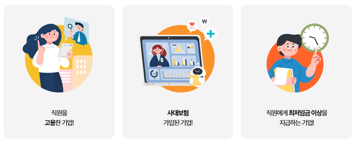 | 2단계 : 서류 준비 | 지원금별 신청서, 사업자등록증, 4대보험 가입내역 등 |