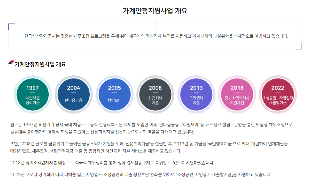 이번 제도는 한국자산관리공사(캠코)가 출자한 조정기구를 통해 대상자들의 채무를 일괄 정리해주는 것이 핵심입니다.