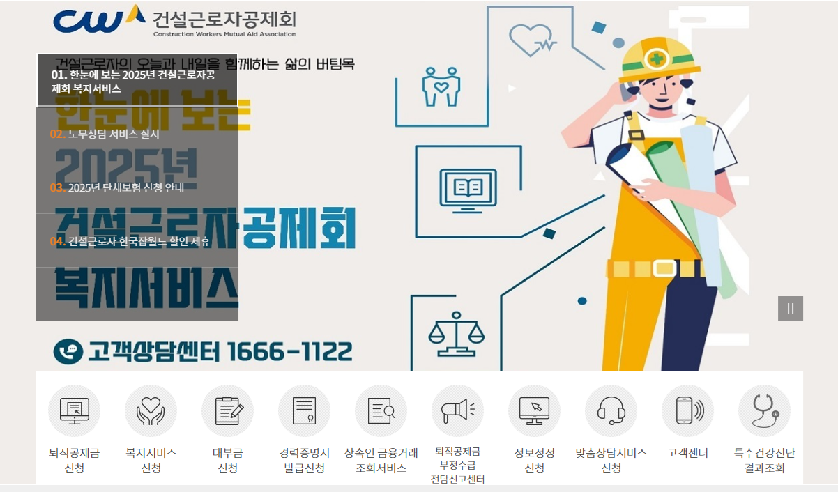- 건설근로자공제회 공식 홈페이지 접속