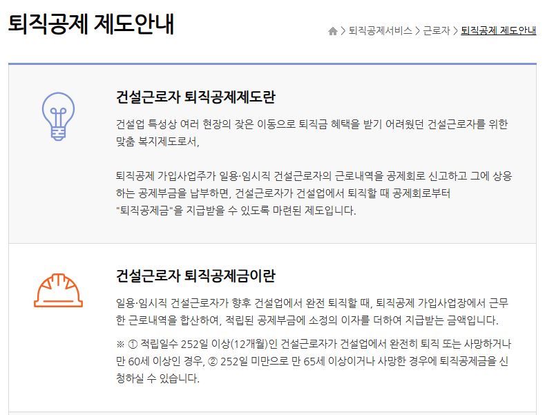 이 문제를 해결하기 위해 마련된 제도가 바로 ‘건설근로자 퇴직공제제도’입니다.