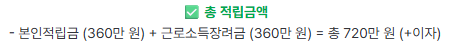 - 지원 방식: 본인 저축 + 정부 근로소득장려금 + 추가지원금