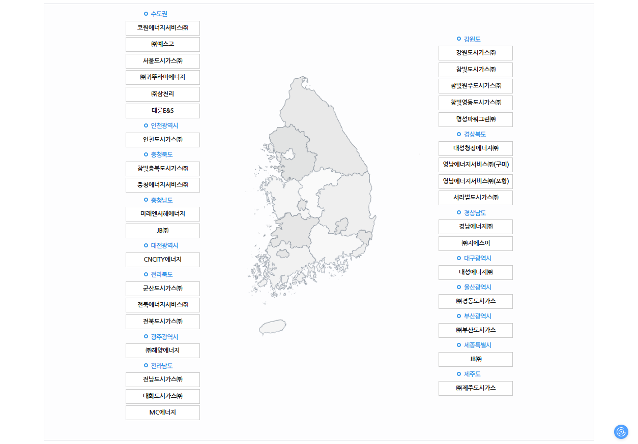따라서 가장 먼저 해야 할 일은 내 집이나 사무실이 속한 지역의 도시가스 회사를 확인하는 것입니다.