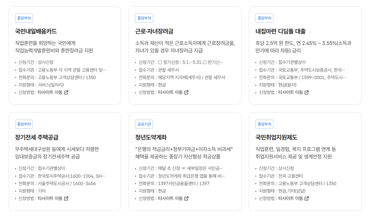 | 서비스 특징 | 중앙+지방+공공기관 복지 한눈에 보기 |