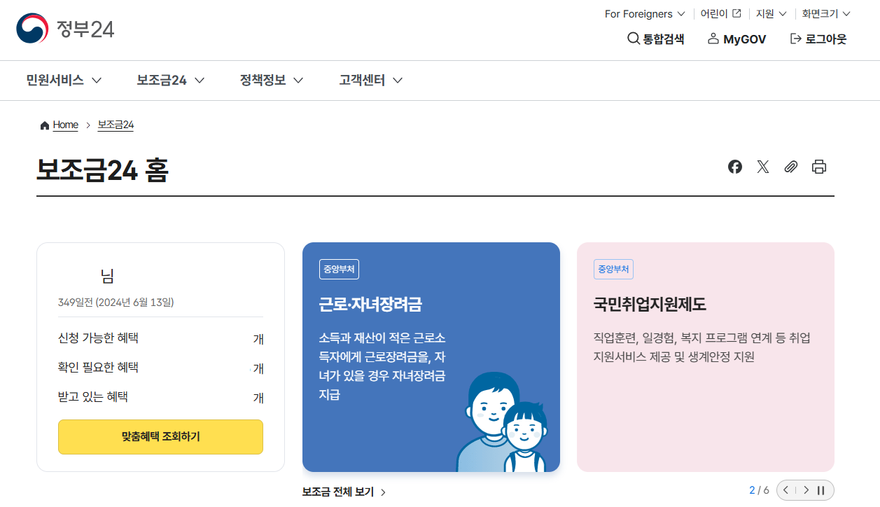 보조금24 | 정부24