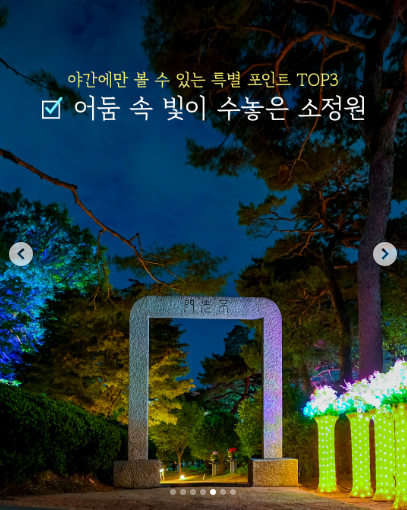 | 계절별 매력 | 사계절 모두 다른 분위기로 관람 가능 |